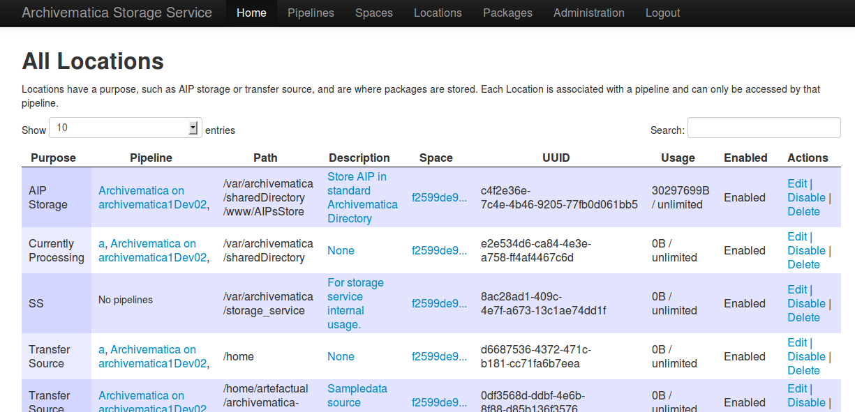 Archivematicaストレージサービスは、複数のArchivematicaパイプラインに関連するストレージスペースの構成を 可能にします。これにより、ストレージ管理者は、ローカルおよびリモートの各Archivematicaインストールで利用可能な ストレージを設定できます。